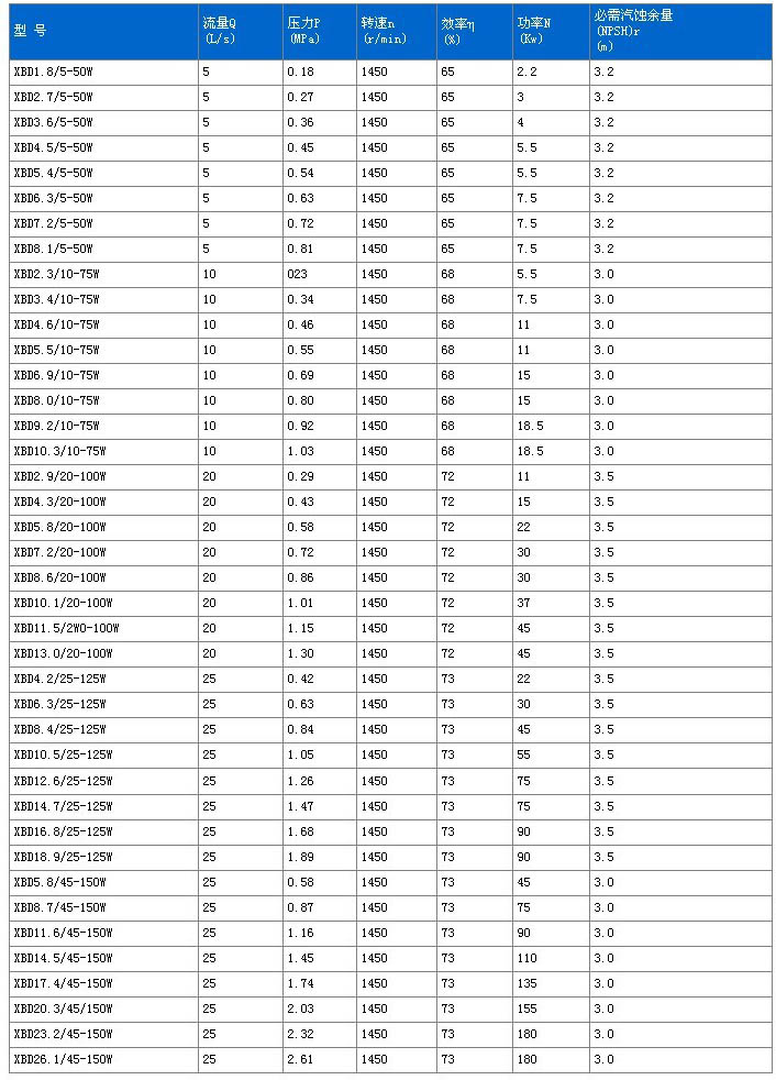 XBD型消防泵系立式節(jié)段式結(jié)構(gòu),主要用于輸送溫度不超過(guò)80℃的清水或物理化學(xué)性質(zhì)與水類(lèi)似的其它介質(zhì)。泵立式安裝具有結(jié)構(gòu)緊湊、占地面積小、運(yùn)轉(zhuǎn)平穩(wěn)等優(yōu)點(diǎn)。供各種建筑中消防系統(tǒng)給水泵,也可作生活用水供水泵用。產(chǎn)品經(jīng)國(guó)家消防裝備質(zhì)量監(jiān)督檢測(cè)中心封樣檢測(cè)質(zhì)量性能全面符合GB6254-1998國(guó)際要求。產(chǎn)品性能達(dá)到國(guó)內(nèi)同類(lèi)型產(chǎn)品先進(jìn)水平。