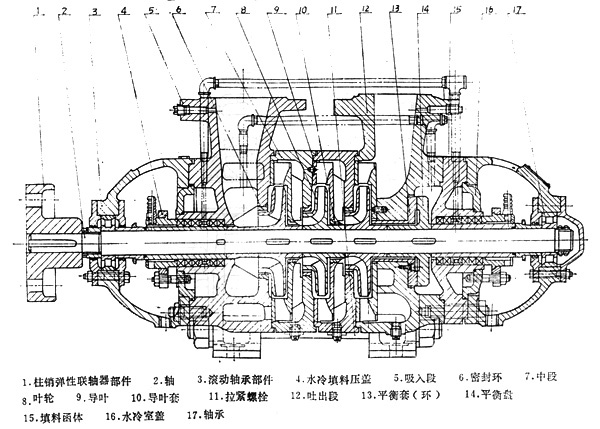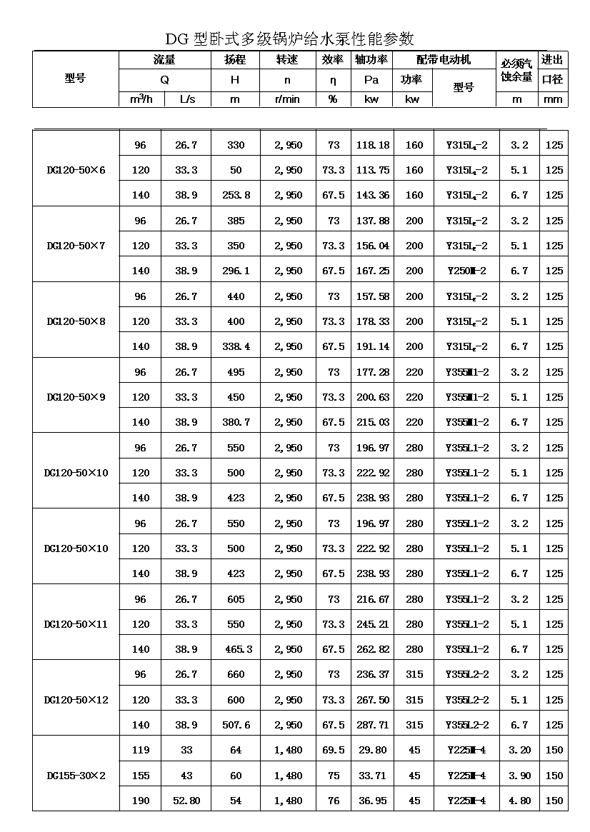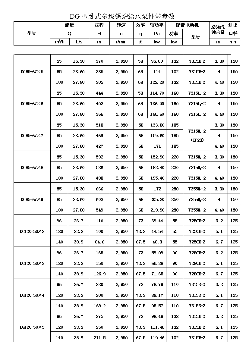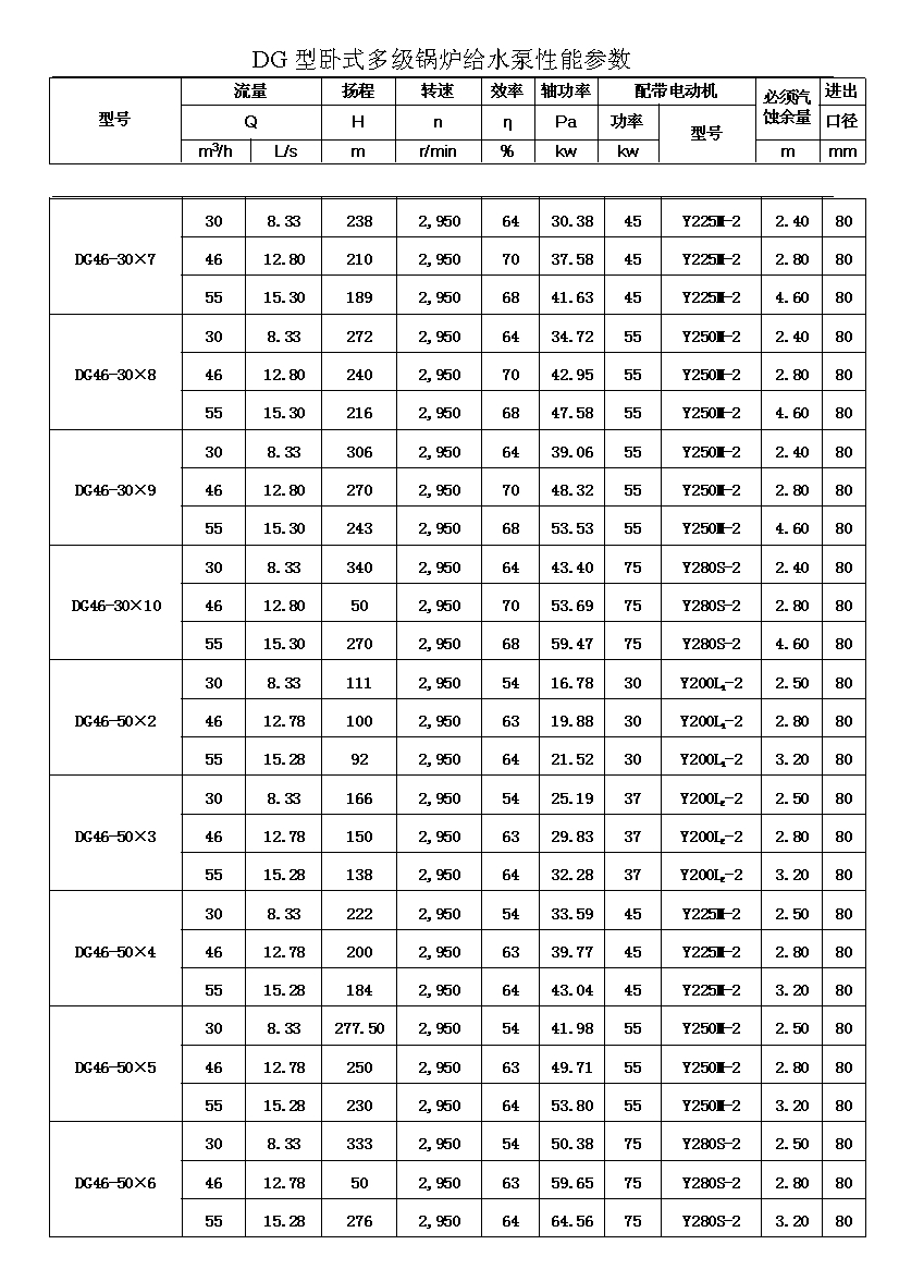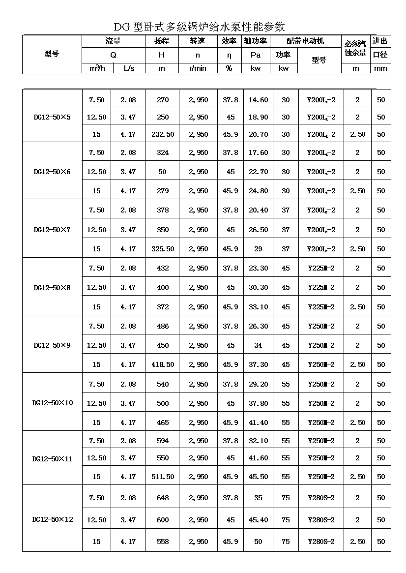 DG型鍋爐給水泵是臥式單級多吸分段式離心水泵。供吸送清水(含雜質量小于1%,顆粒度小于0.1mm)及物理化學性質類似于清水的液體之用。輸送介質溫度不高于105攝氏度,適用于小型鍋爐給水及城鎮供水等場合。DG型鍋爐給水泵屬國家經委、機電部聯合推廣的節能產品,用來代替GC型鍋爐給水泵,其效率平均比GC型高8%,敬請用戶優先選用。