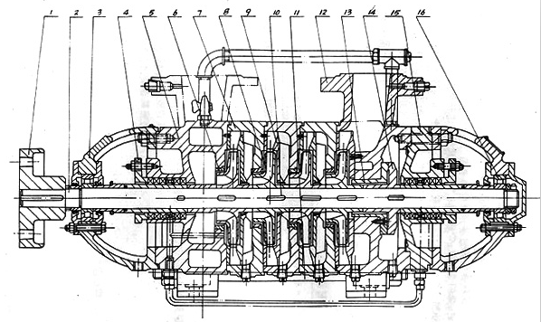 泵殼體部分主要由軸承、前段、中段、后段、導葉等用螺栓聯接成整體,