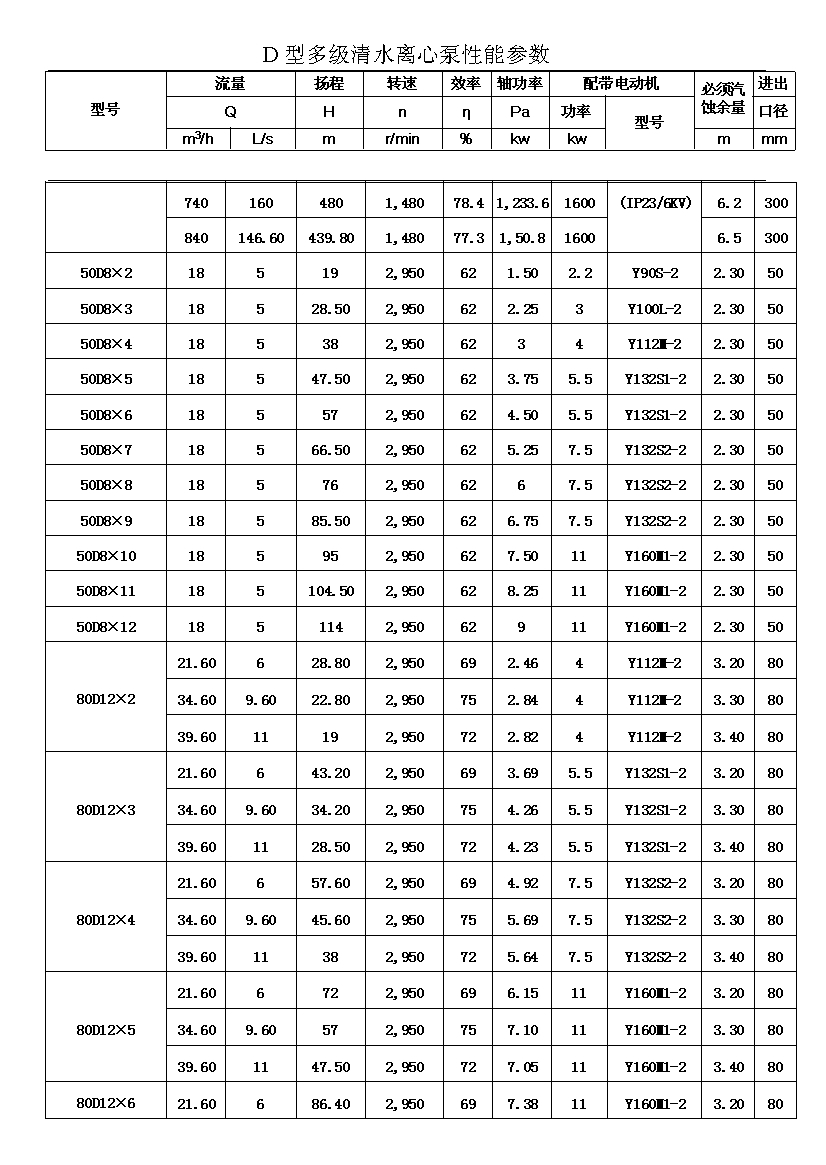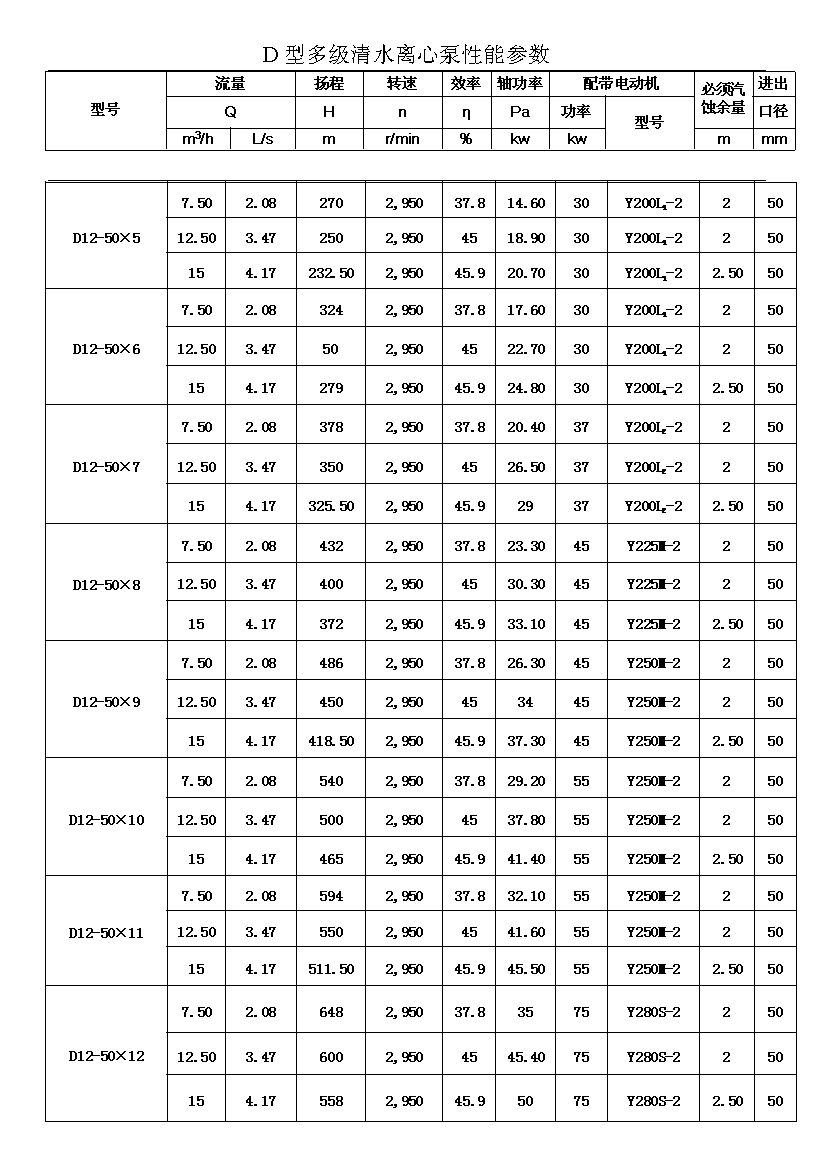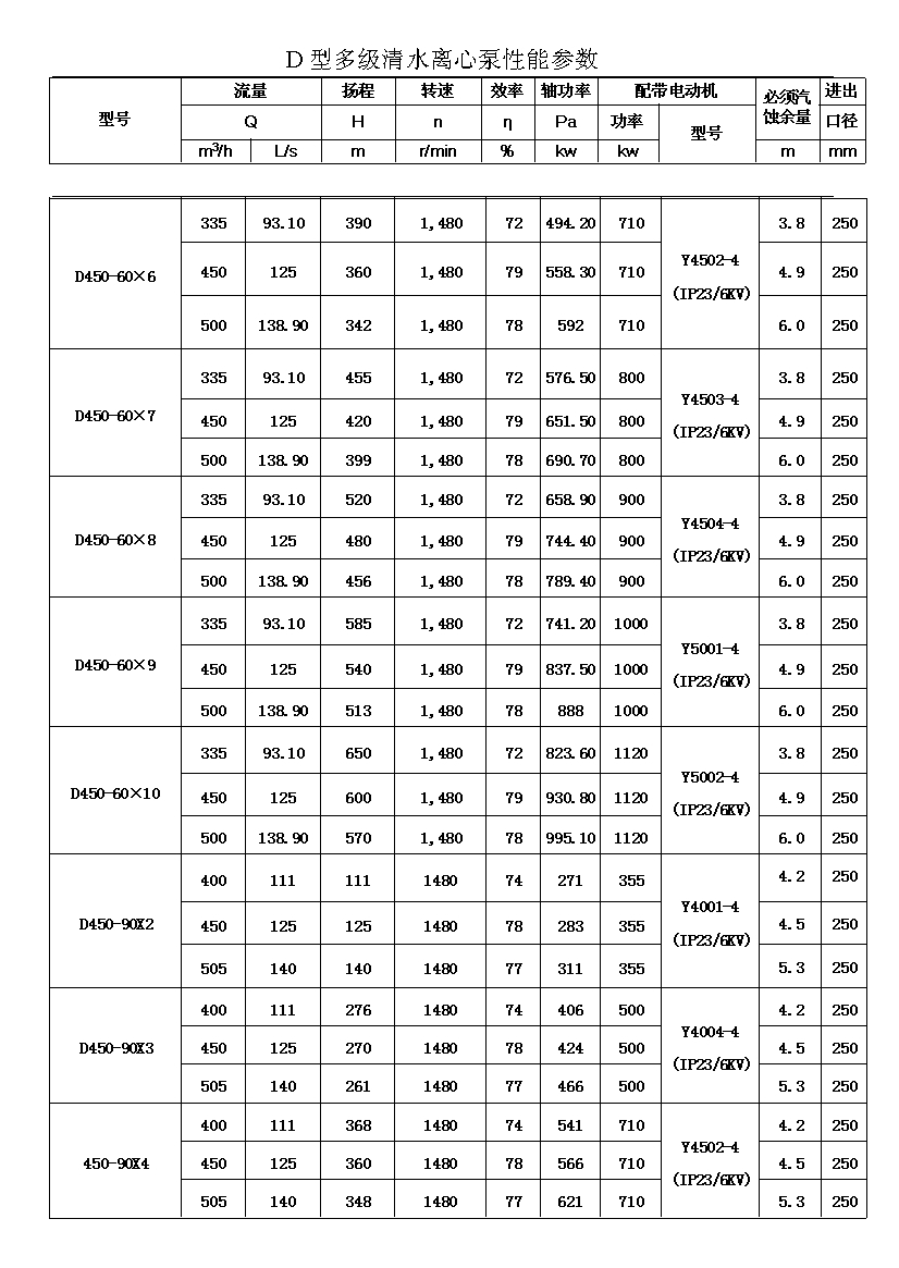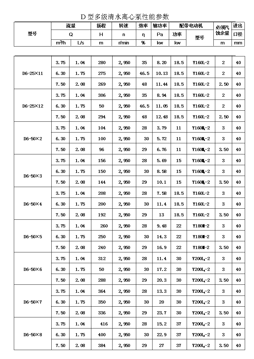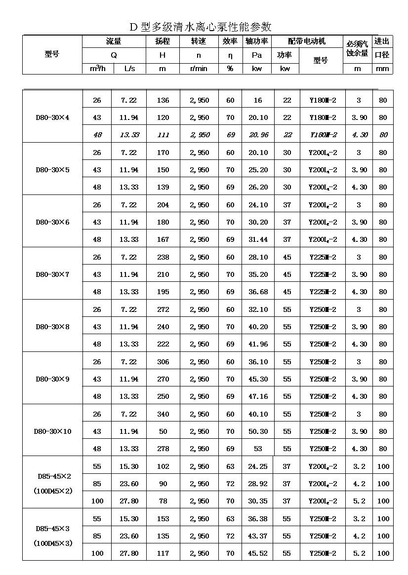 D型泵是單吸多級分段式離心泵,供吸送清水及物理化學性質類似于水的其它液體之用,本型泵的主要性能范圍:單級揚程25米~67米,流量6.3米3/時~450米3/時,液體的***高溫度不超過80℃,適用于礦山、工廠及城市給排水之用。
