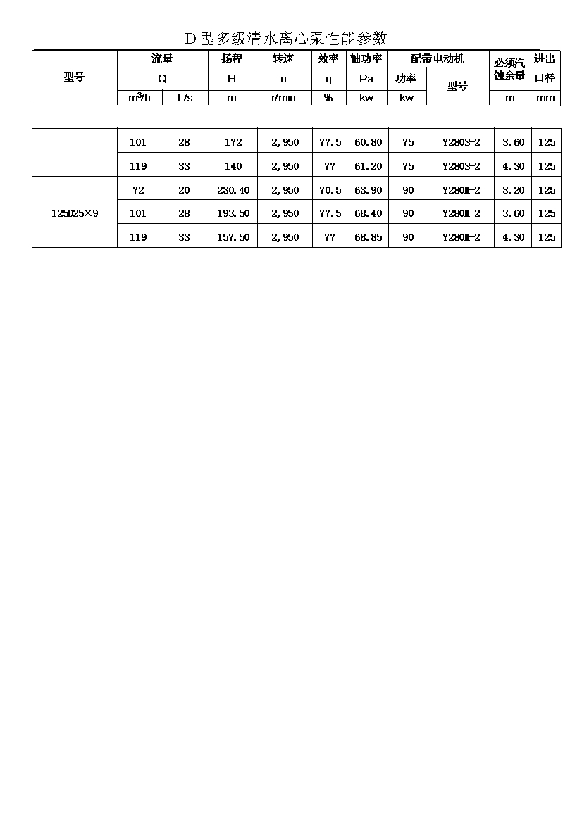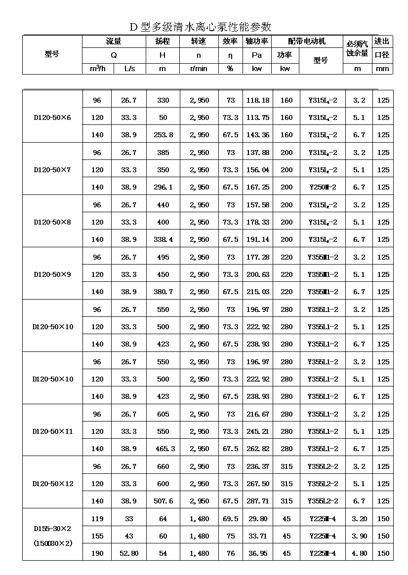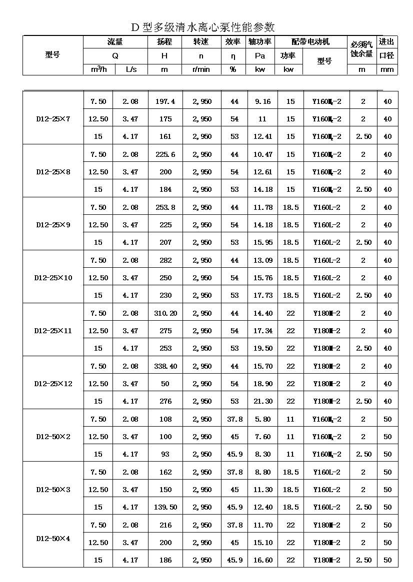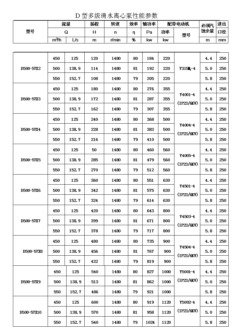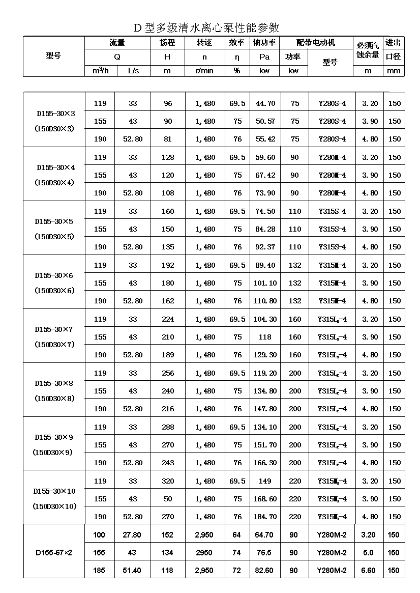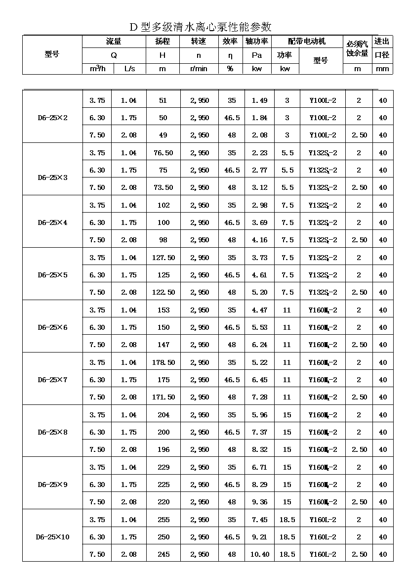 D型泵是單吸多級分段式離心泵,供吸送清水及物理化學性質類似于水的其它液體之用,本型泵的主要性能范圍:單級揚程25米~67米,流量6.3米3/時~450米3/時,液體的***高溫度不超過80℃,適用于礦山、工廠及城市給排水之用。